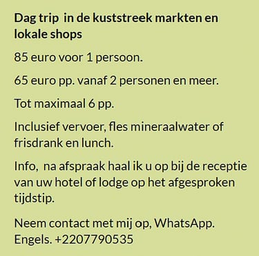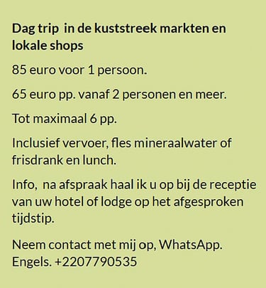 Al mijn rondreizen zijn volledig verzorgd op basis van volpension, inclusief comfortabele accommodaties, alle maaltijden en vervoer gedurende de hele reis. Er zijn geen boekingskosten of complexe vooruitbetalingen, je betaalt pas bij aankomst. Zo kun je onbezorgd genieten van jouw avontuur!